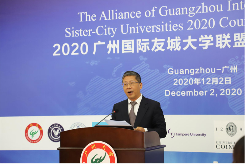 會(huì)議內(nèi)容: 12月2日,廣州國際友城大學(xué)聯(lián)盟2020年理事會(huì)會(huì)議在廣大校內(nèi)召開,此次會(huì)議以“攜手應(yīng)對(duì)后疫情時(shí)代的挑戰(zhàn),友城大學(xué)推進(jìn)城市可持續(xù)發(fā)展”為主題,線上線下聯(lián)動(dòng),來自聯(lián)盟11所成員大學(xué)、新申請(qǐng)大學(xué)、特邀觀察員大學(xué)等國內(nèi)外高校的代表通過視頻會(huì)議聚首。